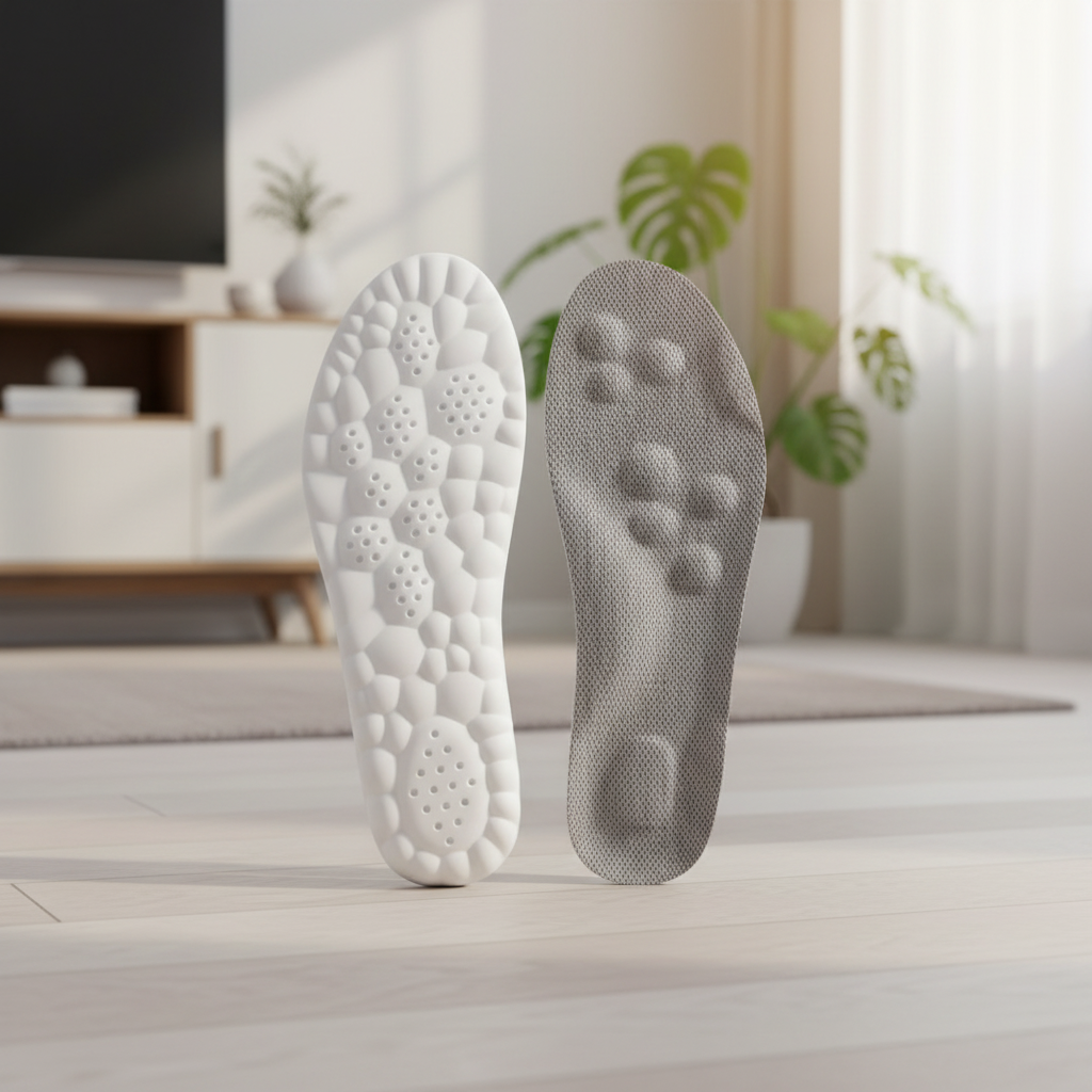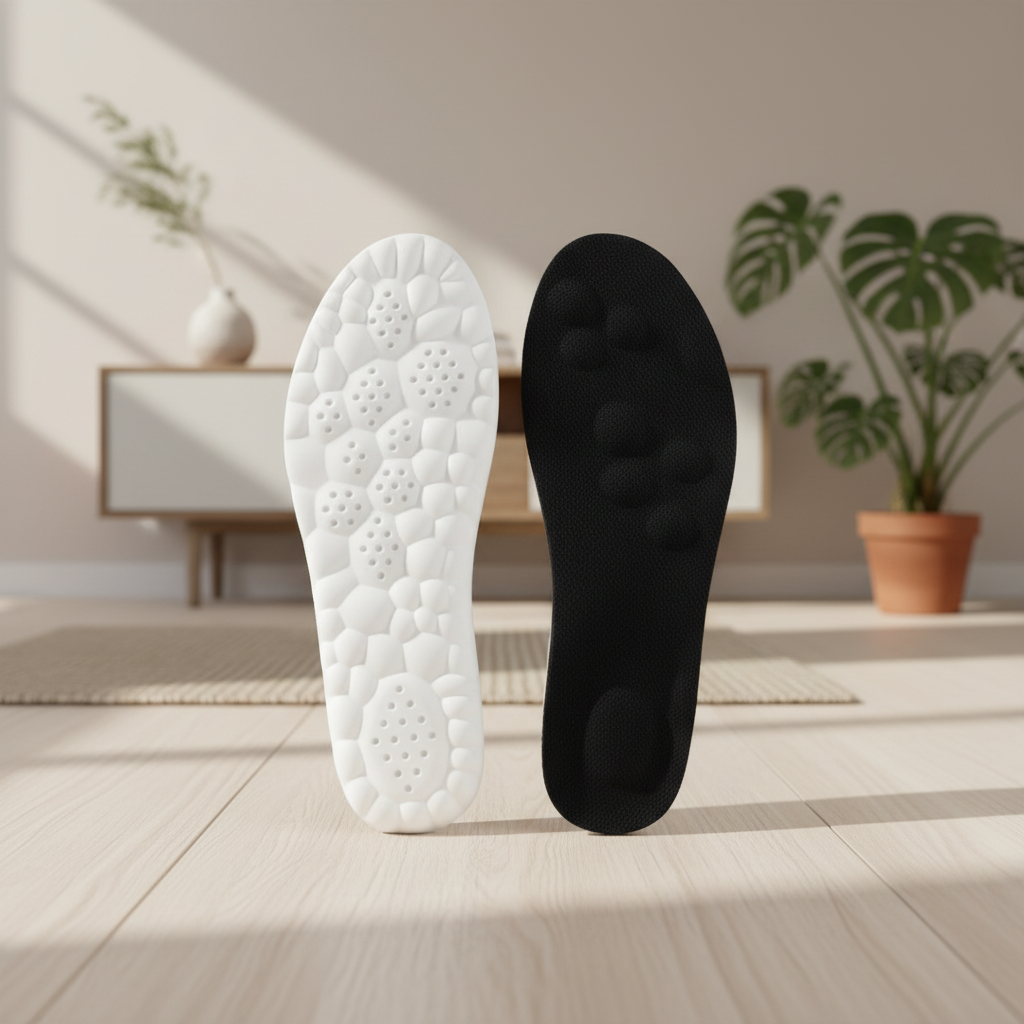 10 integrierte Massagepunkte stimulieren gezielt die Druckzonen deiner Füße und sorgen bei jedem Schritt für spürbare Entlastung. Sie fördern die Durchblutung, unterstützen die natürliche Fußform und helfen dabei, dein Körpergewicht gleichmäßig zu verteilen – so werden Füße und Gelenke effektiv geschont und Überlastung vorgebeugt.